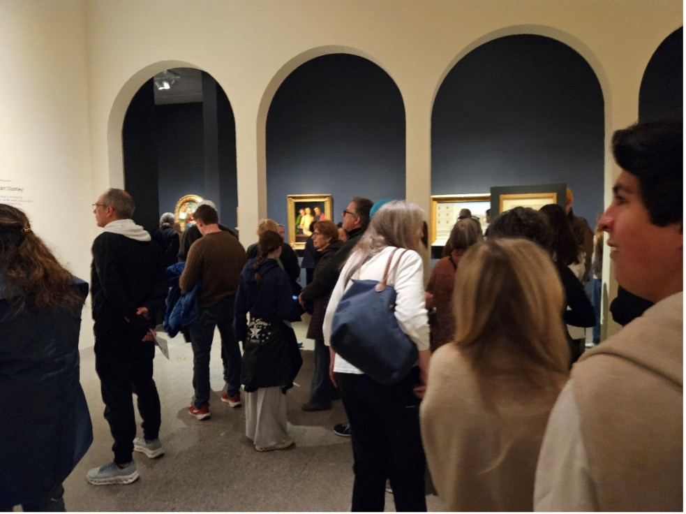 In addition to scholarly wonks, the show was filled by the general public, many of them snapping selfies. It’s inevitable, and there’s really no stopping it, but to my mind it goes against the viewing opportunity, a situation summed up in a poem published in the latest issue of The Brazen Head by a museum-goer (me) with a rather jaundiced eye: